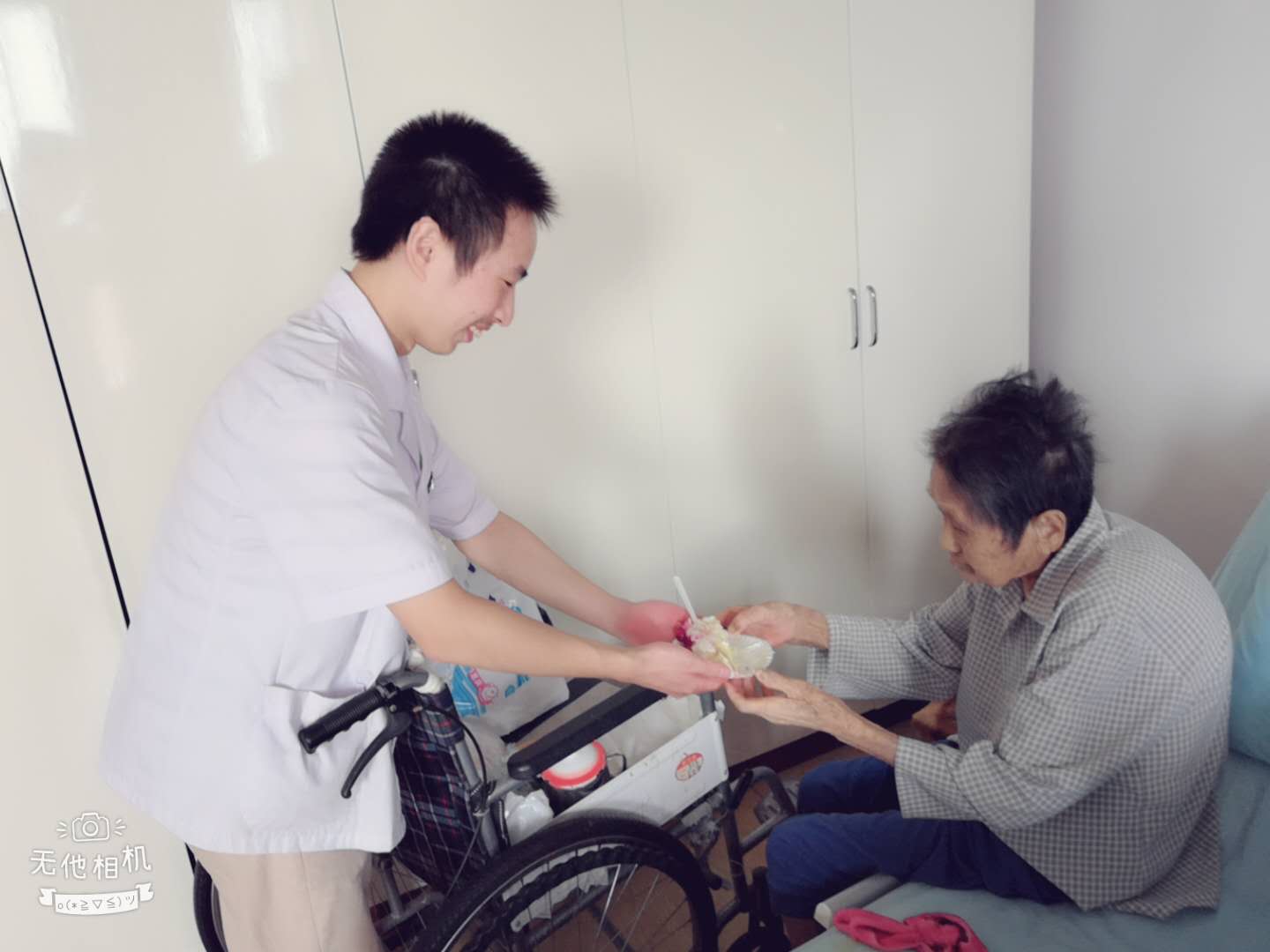 溫暖的笑臉架起了交流的橋梁,護理院的房間里一片脈脈溫情。